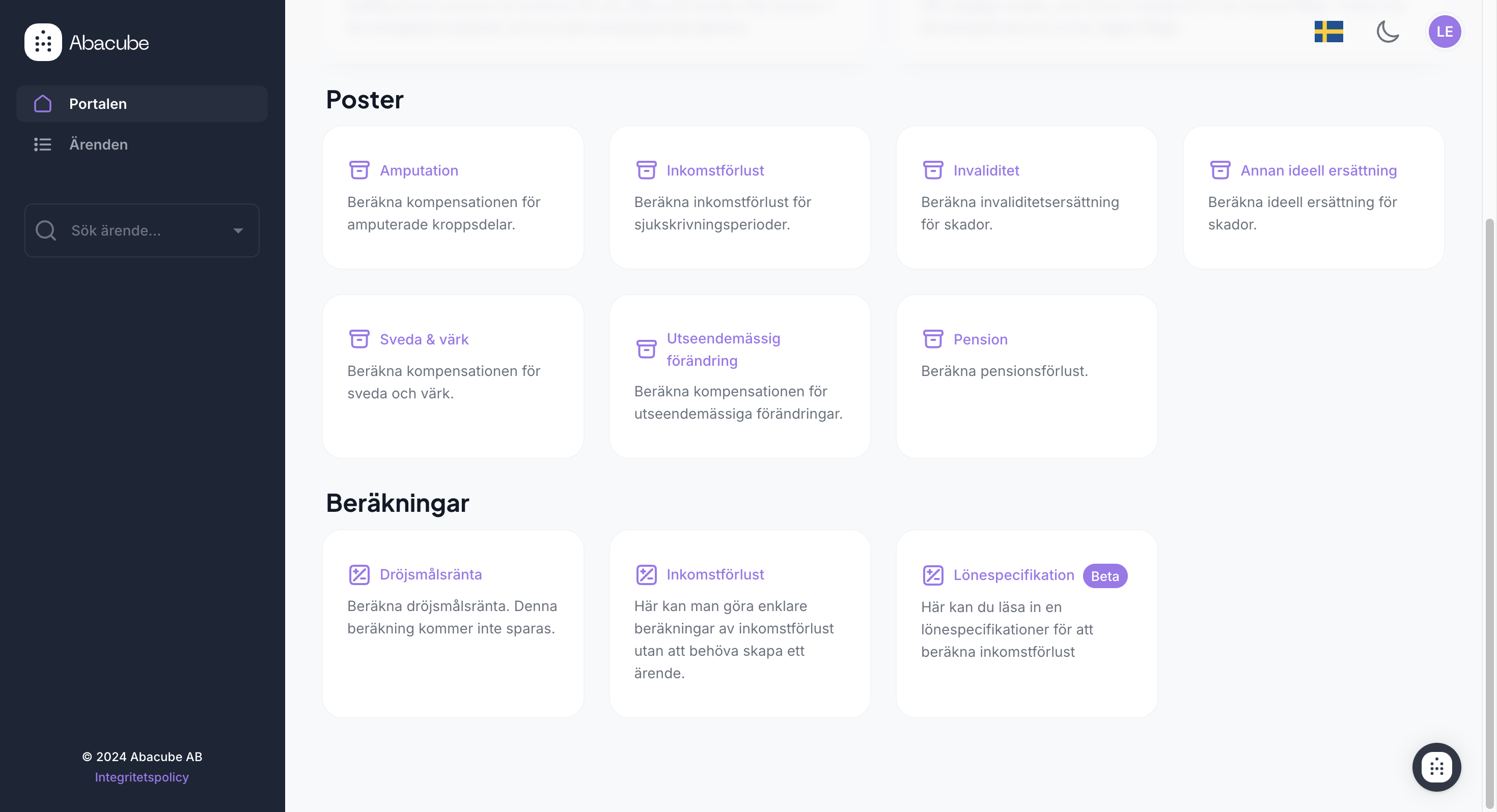 Från Portalen som vi kallar den, kan du direkt skapa en ny beräkning. Oavsett vilket val du gör kommer portalen att guida dig genom alla steg som behövs för att slutföra din specifika beräkning.