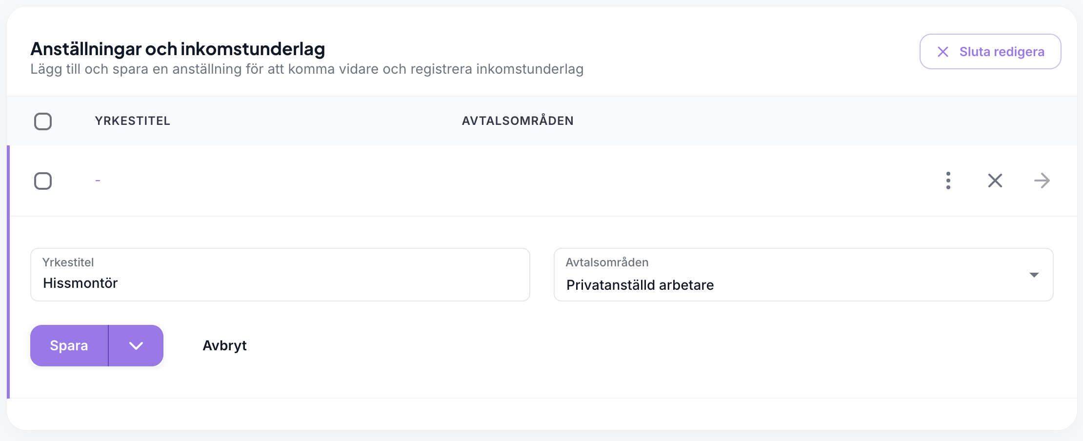 Lägg till anställning och inkomstunderlag